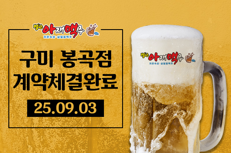 별난아재맥주구미 봉곡점 계약체결완료 계약일 : 2025.09.03매장(예정)주소 : 경북 구미시 봉곡북로9..