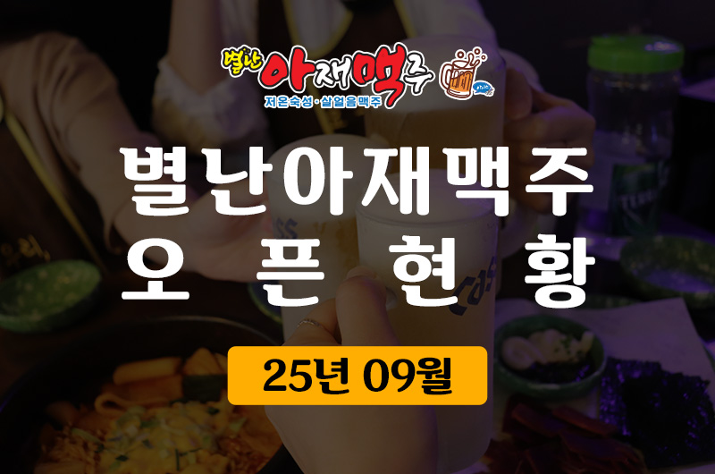 별난아재맥주9월 오픈현황-· 별난아재맥주 대구 죽전점9월 17일 오픈매장주소: 대구 달서구 달구벌대로 153..
